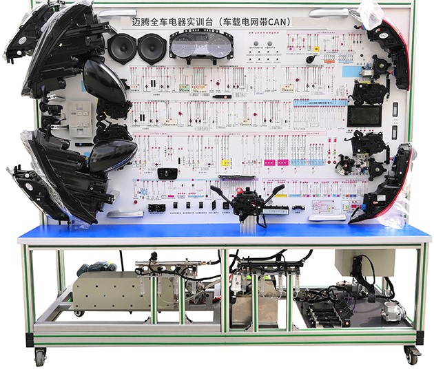 汽車電氣設(shè)備實(shí)訓(xùn)室。汽車電器設(shè)備實(shí)訓(xùn)室包含有汽車燈光系統(tǒng)、車載網(wǎng)絡(luò)系統(tǒng)、全車電器系統(tǒng)、汽車啟動(dòng)系統(tǒng)、汽車空調(diào)系統(tǒng)、全車線路試驗(yàn)臺(tái)、等實(shí)訓(xùn)教學(xué)設(shè)備。該實(shí)訓(xùn)室可以承擔(dān)《汽車構(gòu)造》、《汽車電器設(shè)備》、《汽車電控系統(tǒng)》、《汽車檢測與診斷》等課程的實(shí)踐教學(xué)任務(wù)?梢杂糜谘芯、分析全車電器系統(tǒng)、燈光系統(tǒng)、儀表系統(tǒng)等電器設(shè)備的電路及功能。利用這些系統(tǒng)進(jìn)行實(shí)踐教學(xué),使學(xué)生熟悉汽車電器的結(jié)構(gòu)和工作原理,掌握各個(gè)系統(tǒng)的基本組成電路,掌握主要電路的檢測方法和系統(tǒng)的故障特征,從而具有一定的檢測和調(diào)校能力。