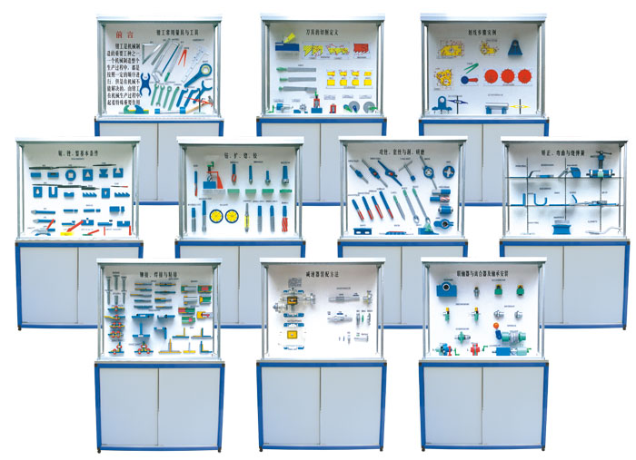 陳列柜、機械陳列柜、電機與變壓器陳列柜、機械基礎(chǔ)陳列柜、機械零件陳列柜、減速器陳列柜、機械原理陳列柜、機械制圖陳列柜、模具示教陳列柜、金屬切削陳列柜、金屬工藝學陳列柜、公差配合陳列柜、鉗工工藝學陳列柜、金屬刀具陳列柜、機床夾具陳列柜、車工工藝學陳列柜、機械設(shè)計基礎(chǔ)陳列柜、機械綜合陳列柜、機械制圖模型、立體示教模型、電機模型、變壓器模型、透明塑膠模具、五金教學模具、機械教學掛圖、機床電氣實訓設(shè)備、機床維修考核設(shè)備、數(shù)控車床綜合實訓考核實驗臺、機電一體化實驗臺、光機電一體化實訓設(shè)備、工程制圖實驗室設(shè)備,液壓氣動PLC控制實驗臺、透明液壓注塑機模型、透明注塑機模模型、冷沖圧機模型、多功能工程制圖桌、機械創(chuàng)新搭接實驗臺、教學生產(chǎn)型數(shù)控車床、數(shù)控銑床、機電一體化《數(shù)控編程實驗》、可編程控制實驗臺、客貨兩用教學仿真電梯實訓設(shè)備、鉗工實訓設(shè)備、機械原理、機械零件、金屬切削刀具、公差配合、車工工藝學、鉗工工藝學、等系列陳列柜以及液壓演示臺