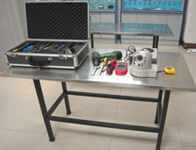 在操作臺(tái)上進(jìn)行線槽、線管、橋架等材料加工。