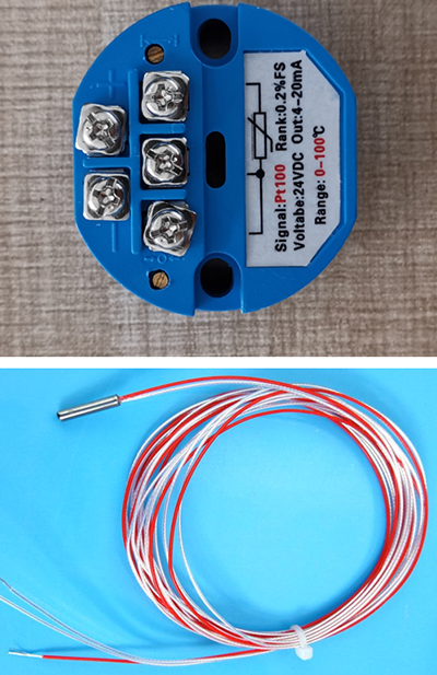 特點:Pt100傳感器精度高,熱補償性較好,用于做標準校驗用熱電阻。變送器部分供電DC24V,輸出4-20mA DC通信功能,用于測量加熱模塊內(nèi)部的溫度,是工業(yè)現(xiàn)場中常用的一溫度測量儀表。精度為0.5級