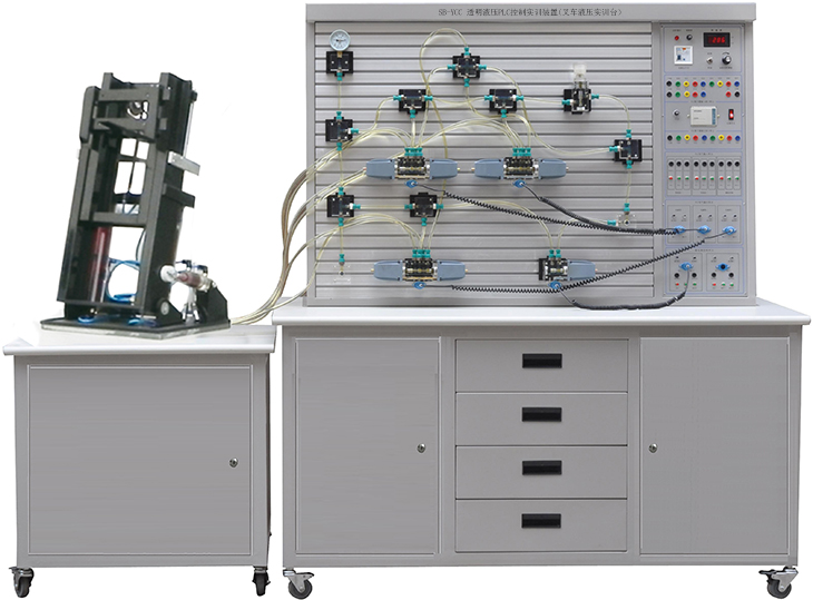 液壓與氣動(dòng)技術(shù)實(shí)驗(yàn)室設(shè)備、透明液壓實(shí)驗(yàn)臺(tái)、氣動(dòng)實(shí)驗(yàn)臺(tái)、液壓元件拆裝實(shí)訓(xùn)臺(tái)、透明液壓傳動(dòng)演示實(shí)驗(yàn)臺(tái)、液壓綜合測(cè)試實(shí)驗(yàn)臺(tái)、智能液壓綜合實(shí)驗(yàn)臺(tái)、機(jī)電液綜合實(shí)驗(yàn)臺(tái)、雙面氣動(dòng)傳動(dòng)實(shí)驗(yàn)臺(tái)、液壓氣動(dòng)元件陳列柜、液壓挖掘機(jī)實(shí)驗(yàn)臺(tái)、液壓起重機(jī)實(shí)驗(yàn)臺(tái)、液壓裝載機(jī)實(shí)驗(yàn)臺(tái)、透明液壓推土機(jī)實(shí)訓(xùn)臺(tái)、液壓叉車控制教學(xué)實(shí)驗(yàn)臺(tái)主要承擔(dān)機(jī)電類相關(guān)專業(yè)《液壓與氣動(dòng)技術(shù)》課程的專業(yè)實(shí)驗(yàn)任務(wù)。能提供包括液壓泵和控制元件結(jié)構(gòu)拆裝與分析實(shí)驗(yàn)、系統(tǒng)回路控制實(shí)驗(yàn)、系統(tǒng)性能實(shí)驗(yàn)和氣動(dòng)技術(shù)實(shí)驗(yàn)在內(nèi)的不同類型的實(shí)驗(yàn)。液壓與氣動(dòng)實(shí)驗(yàn)室所開(kāi)設(shè)的實(shí)驗(yàn)和液壓(或氣動(dòng))行業(yè)中的液壓系統(tǒng)(或氣動(dòng)系統(tǒng))的設(shè)計(jì)、連接調(diào)試、維護(hù)等緊密相關(guān),通過(guò)機(jī)-電-液一體化綜合控制實(shí)驗(yàn),學(xué)生可系統(tǒng)地學(xué)習(xí)PLC程序設(shè)計(jì)與調(diào)試、液壓回路的設(shè)計(jì)與調(diào)試,并且通過(guò)碩博軟件使相關(guān)知識(shí)有機(jī)地結(jié)合在一起,實(shí)現(xiàn)對(duì)硬件的動(dòng)作,從而提高各門課程的綜合應(yīng)用能力。